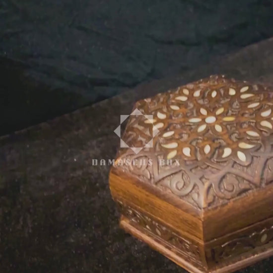 caja tallada a mano, caja de nácar, artesanía de damasco, caja hexagonal de lujo, regalo artesanal, Damascus Box