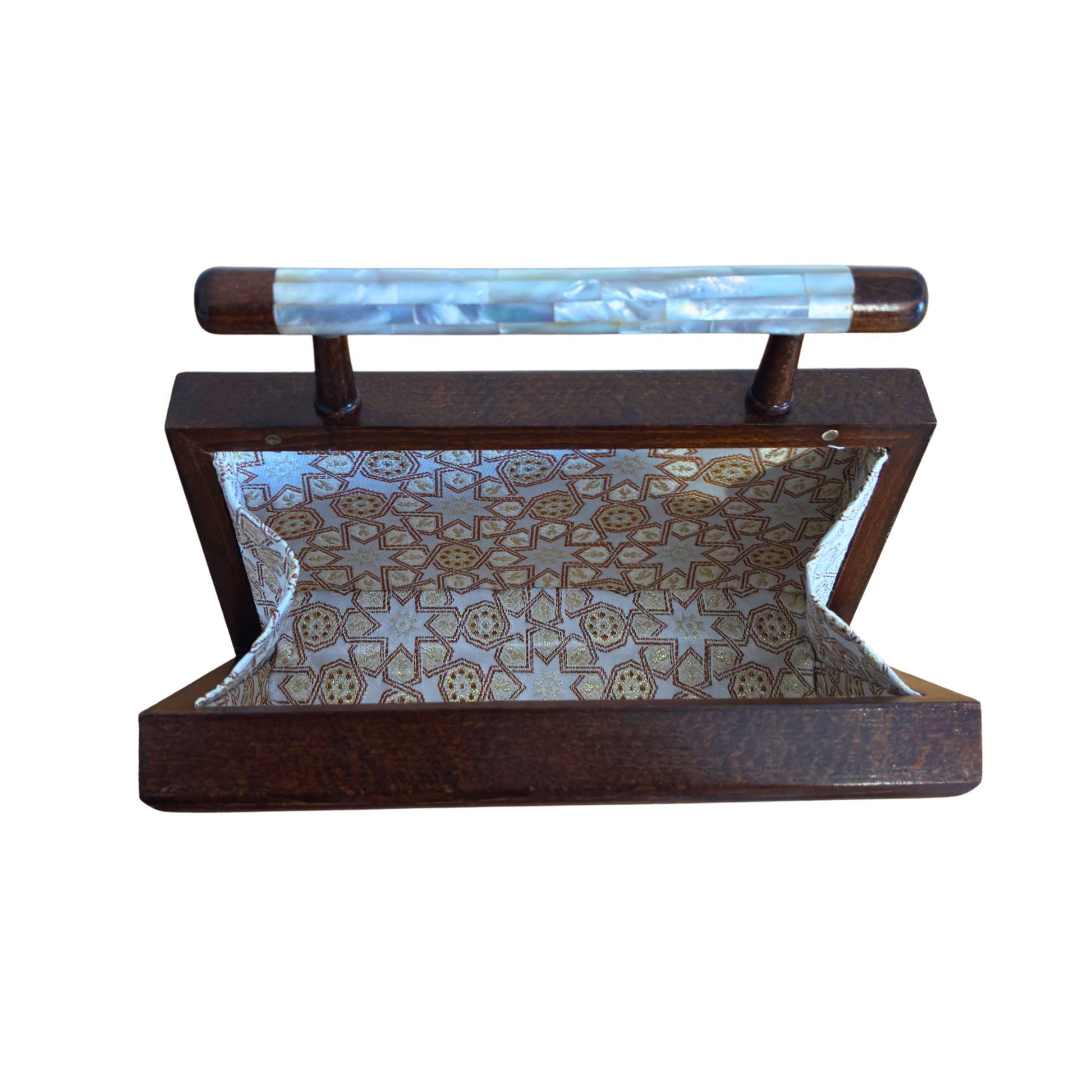 borsa damaschina, madreperla, legno di noce, broccato, arte orientale, fatto a mano, Damascus Box