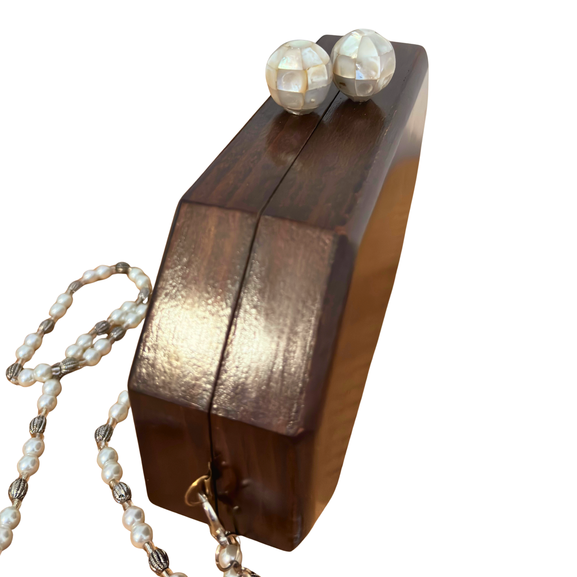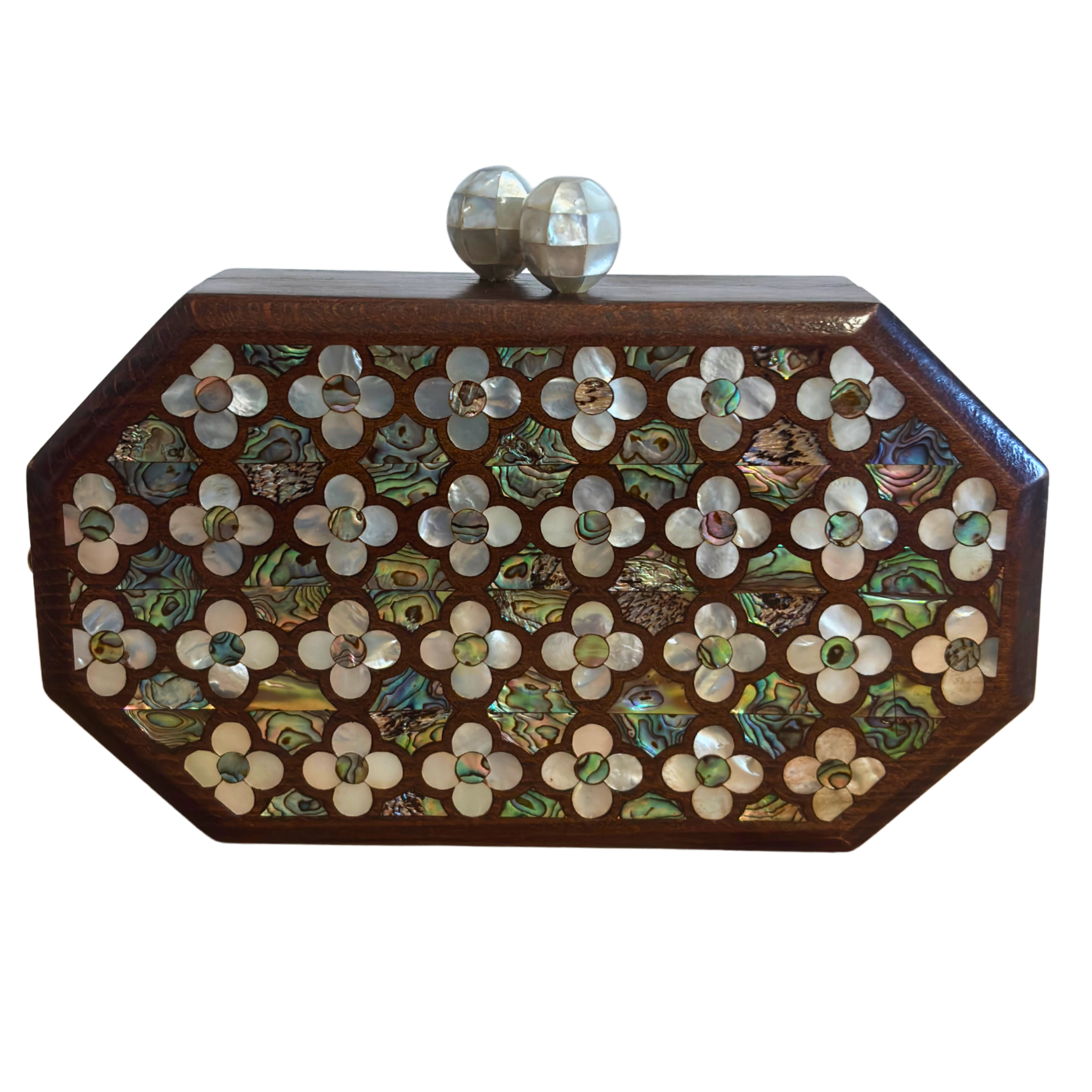Jouri – Clutch Damascena di Lusso con Madreperla Floreale & Catena di Perle