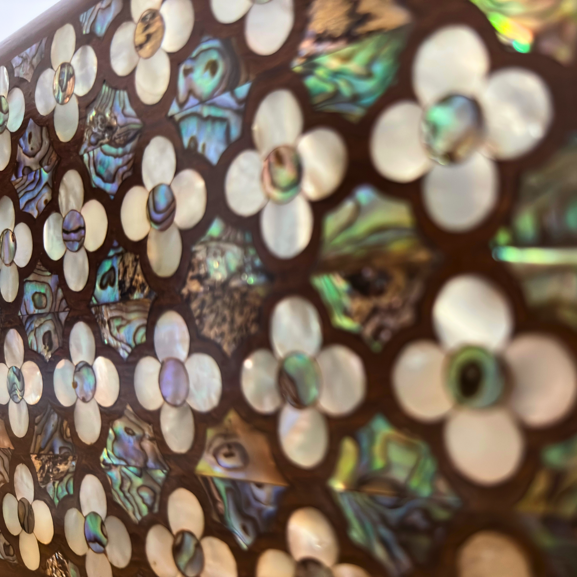 Realizzata a mano in pregiato legno di noce e decorata con rose in madreperla — una femminilità sofisticata scolpita da artigiani damasceni.