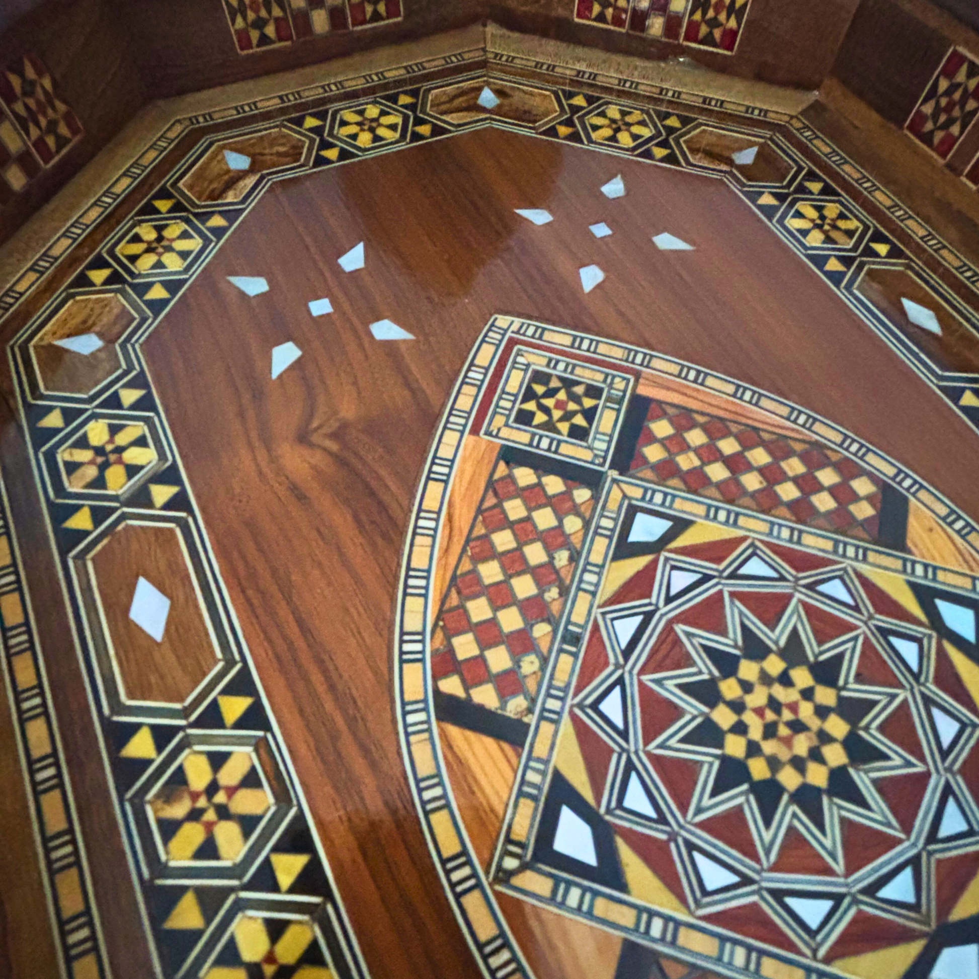 Feita à mão em Damasco, reflete séculos de arte síria, onde a madeira e a madrepérola se unem em harmonia perfeita.