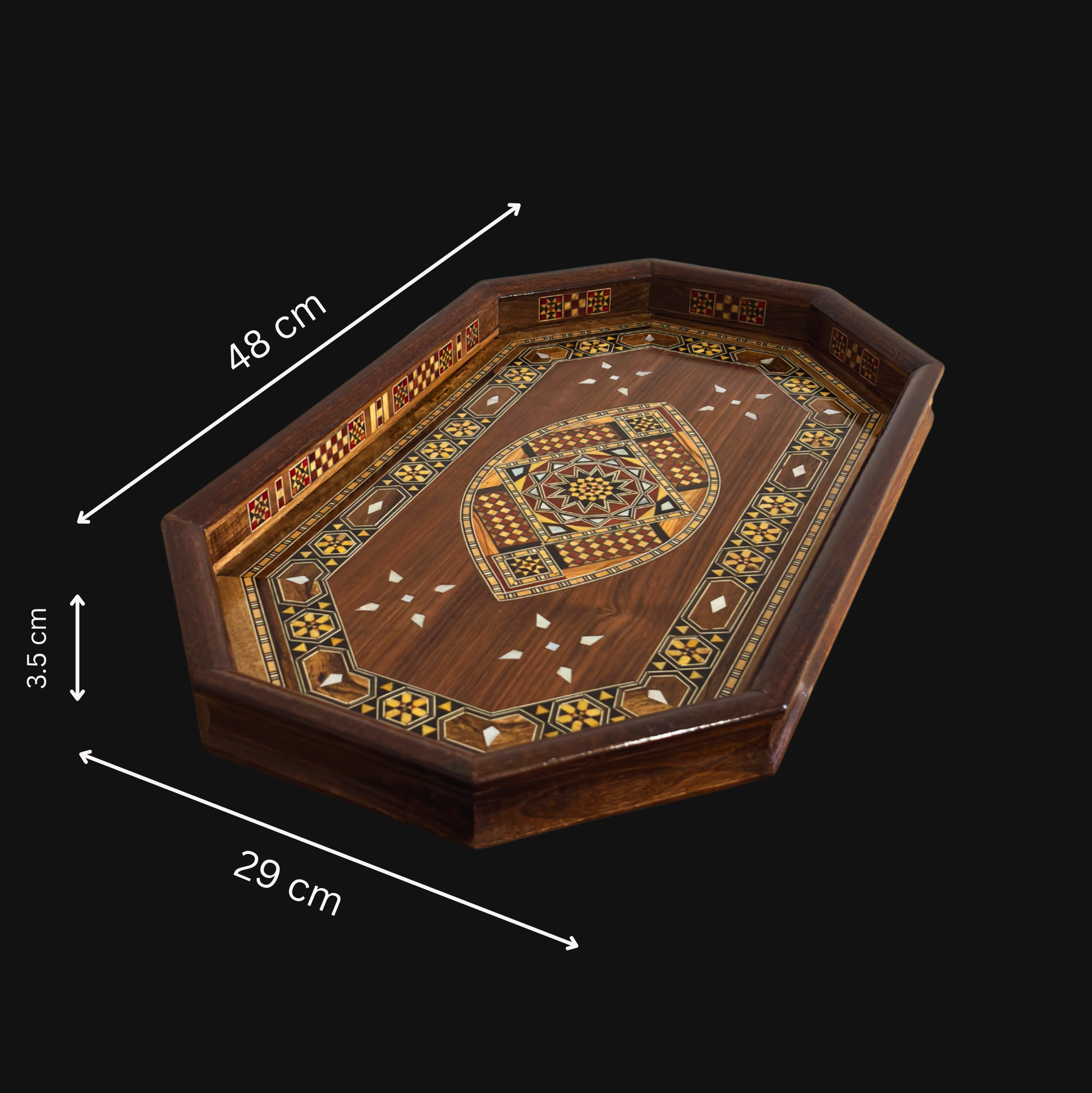 Bandeja Damasquina em Madeira – Madrepérola & Acabamento em Nogueira